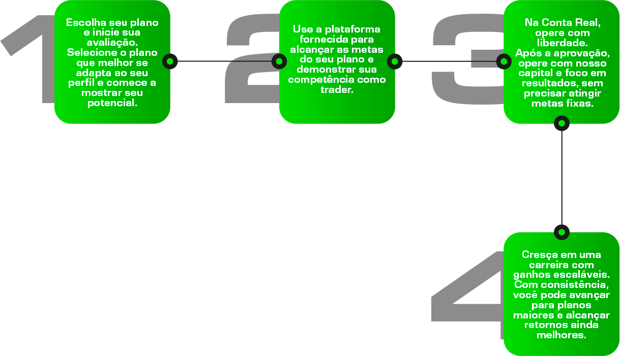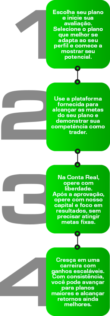 Mais que uma avaliação, essa experiência é uma oportunidade de aprendizado intensivo. O trader pode aprimorar suas habilidades práticas, explorar estratégias e entender a dinâmica do mercado em um ambiente realista e seguro, ganhando conhecimento essencial para operar com segurança no futuro.
